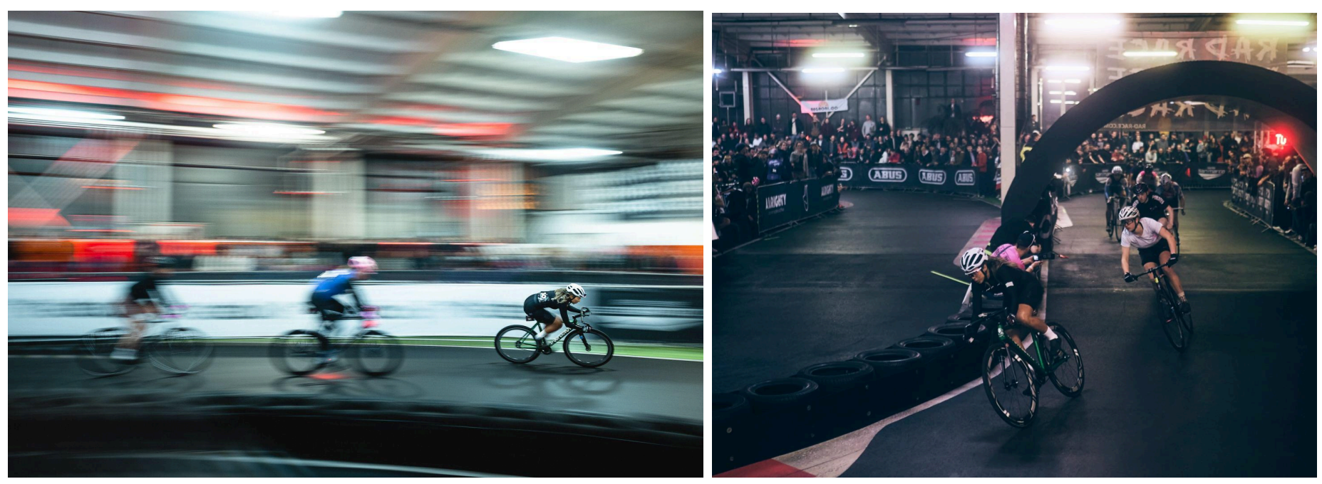 Upon arriving to MOBIKART track Saturday afternoon, March 25th, the weather was cold and rainy. There was a nervous yet excited energy as riders picked up their numbers and set out to test the track. Frenk and Alec Briggs shook hands after it being years since they had last seen each other. Alec recalled that Frenk was one of the reasons he had gotten into fixed gear as the two shared a moment to reminisce about the good ol’ days of Red Hook Crit. Meanwhile Missy and Paola Panzeri sat in a corner tucked away from the crowd, eating pre-race snacks and visiting. Missy expressed she was happy to see Paola because she was the only woman she knew at the race. After 2 hours of practice, registration finally closed and heats were released. Immediately Missy started researching the athletes in heats and knew she would be with some heavy hitters like Thelma Friis-Lund (last year’s winner), Michelle de Graaf, Amy Perryman of Tekkerz, and of course her friend Paola herself. Francesco, as well as everyone else in the men’s heats, knew that Alec Briggs would be the man to beat.